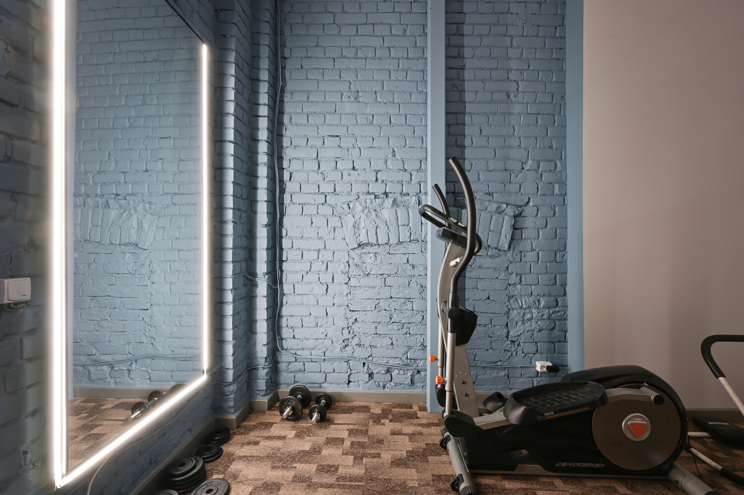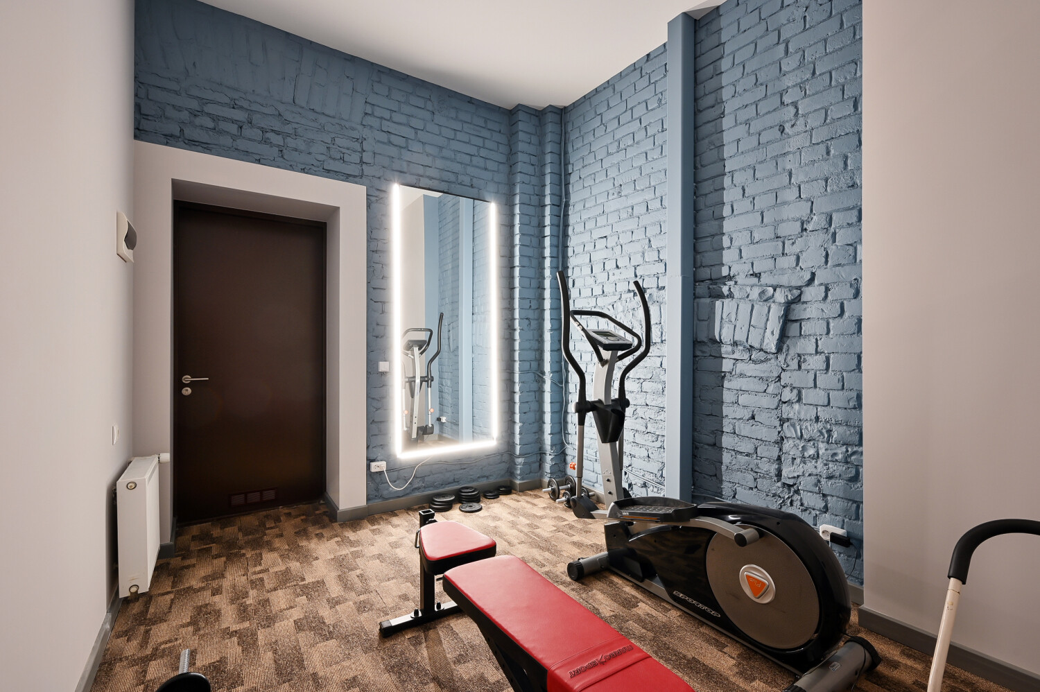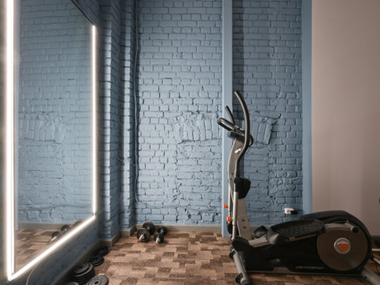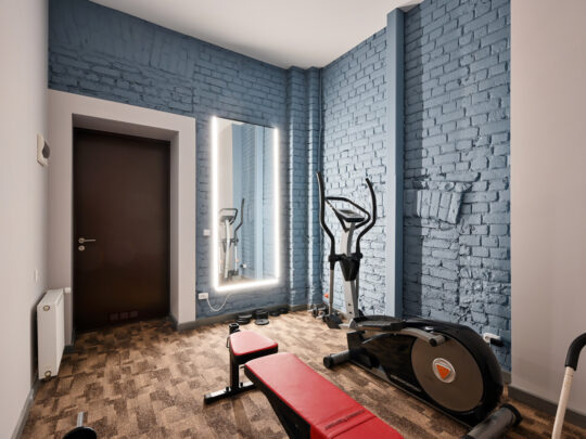 Pieejama privāta sporta zāle un labiekārtota grila vieta mājas pagalmā, radot iespēju baudīt aktīvu dzīvesveidu un atpūtu mājās.