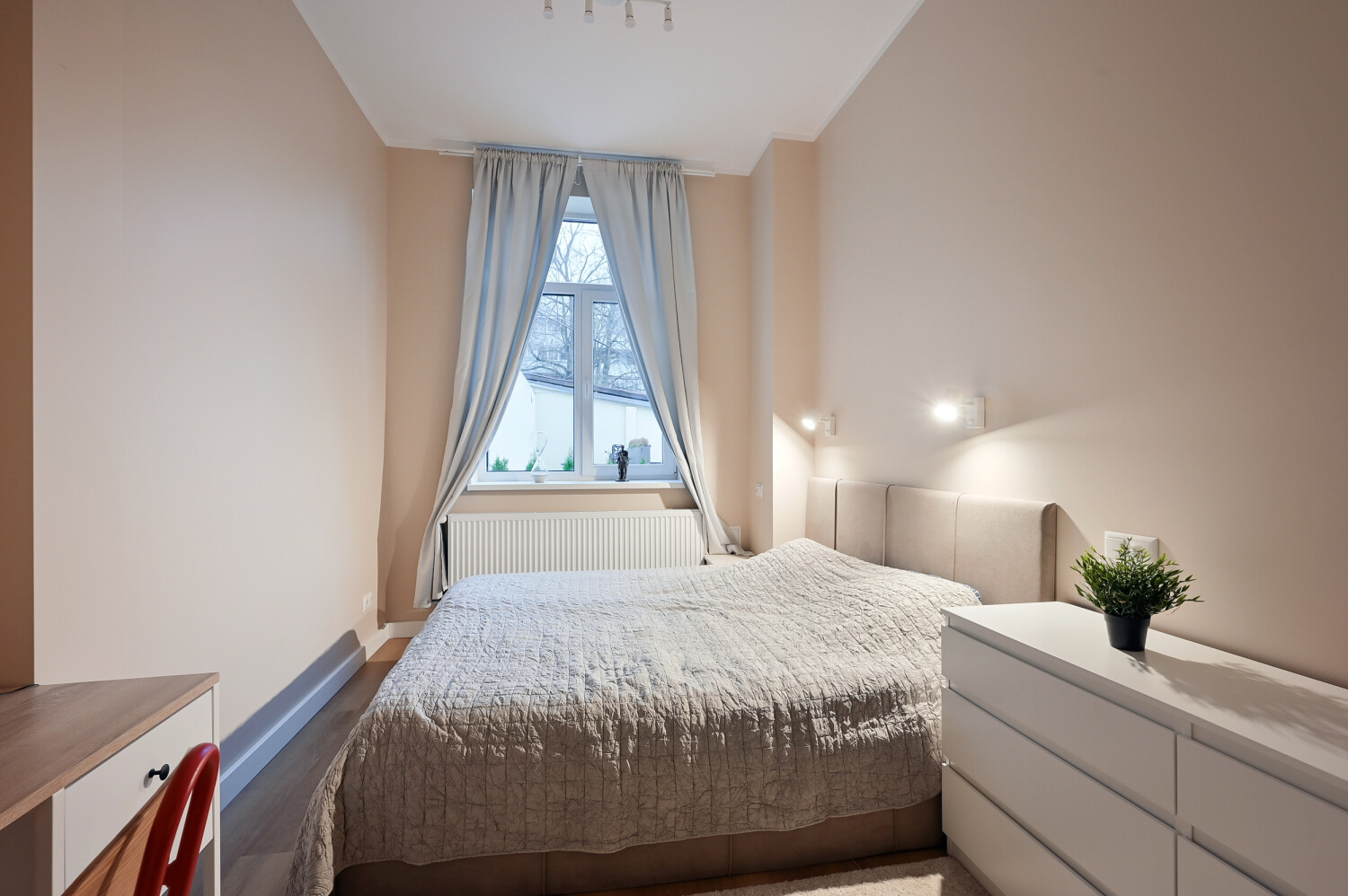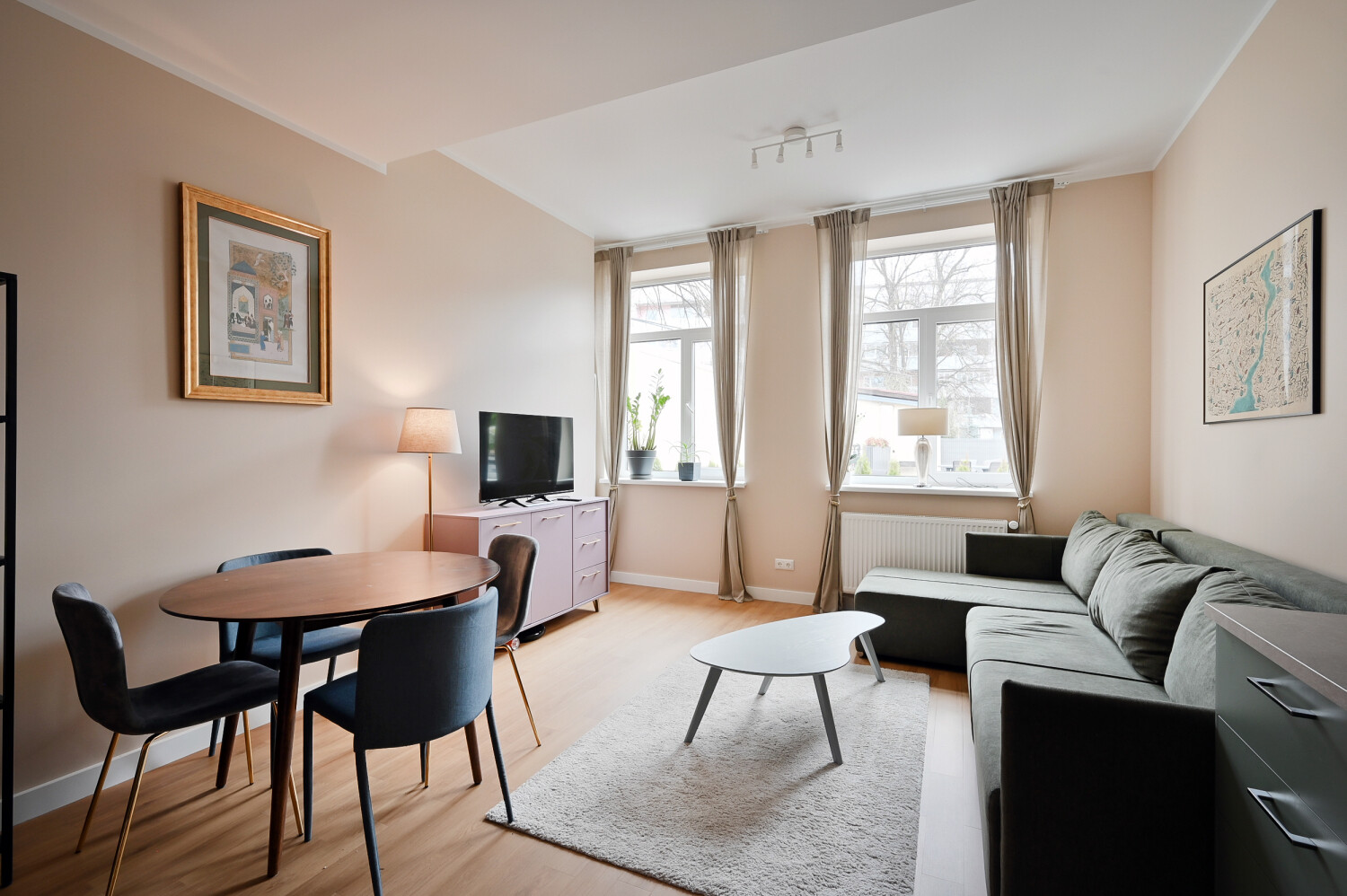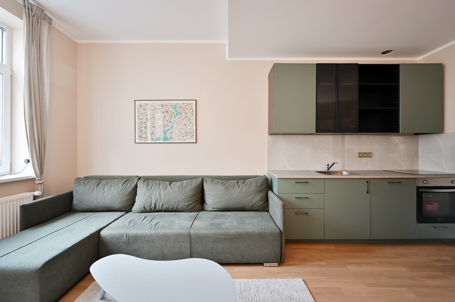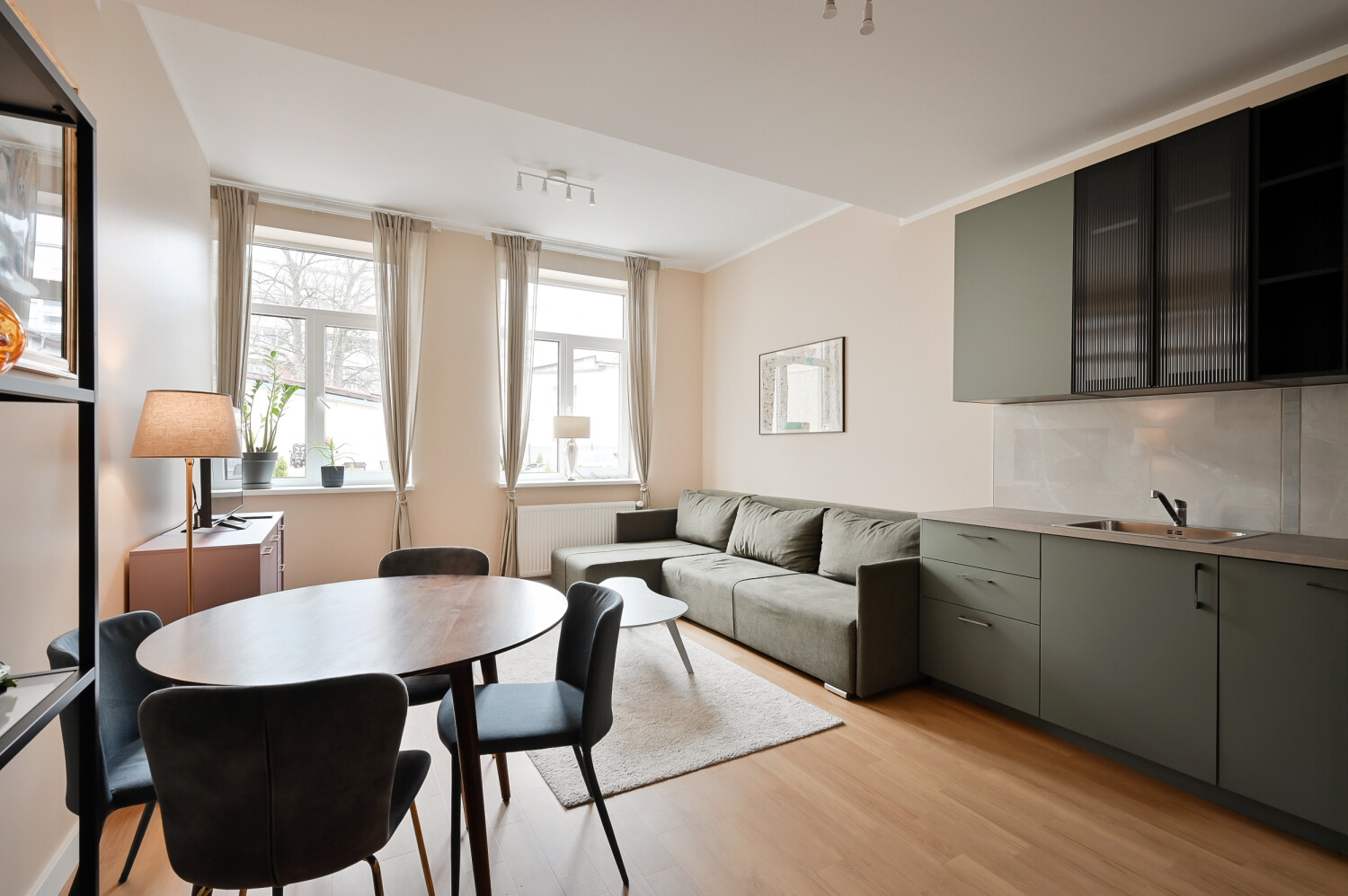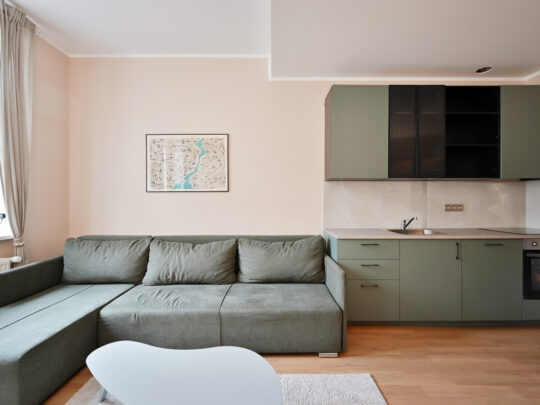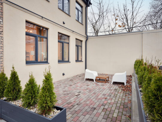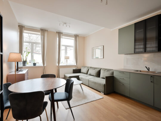 Pieejami 12 gaiši un pārdomāti dzīvokļi ar dažādiem plānojumiem, sākot no studijas tipa līdz dzīvokļiem ar 1–2 guļamistabām. Visi dzīvokļi tiek piedāvāti ar pilnu apdari un iekārtotu sanmezglu. Visi dzīvokļi ir veidoti minimālisma stilā, neitrālos toņos, pilnībā mēbelēti.
