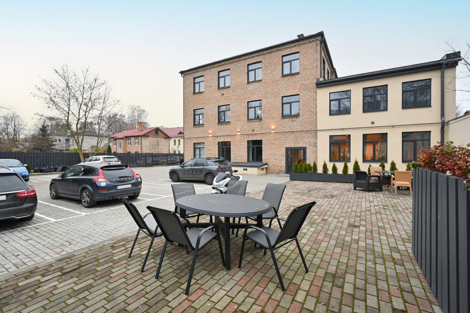 Autostāvvietas iekšpagalmā un mantu glabātuves pieejamas par papildu samaksu, nodrošinot ērtu un praktisku risinājumu jūsu ikdienai.
