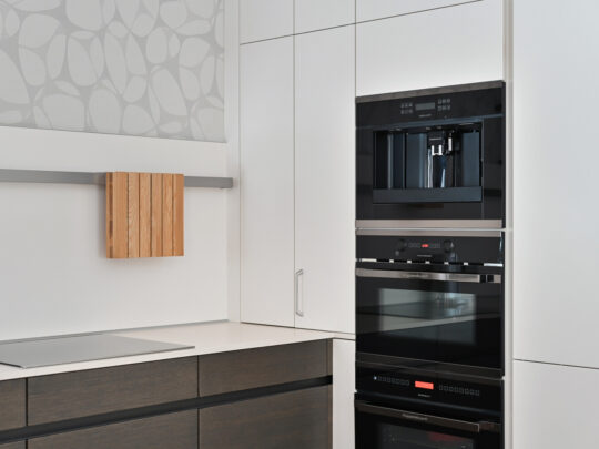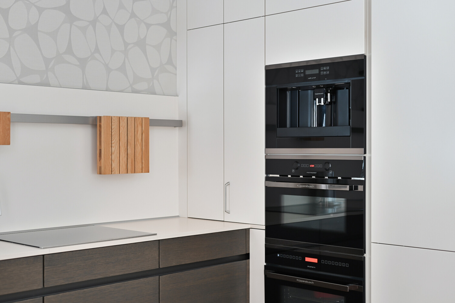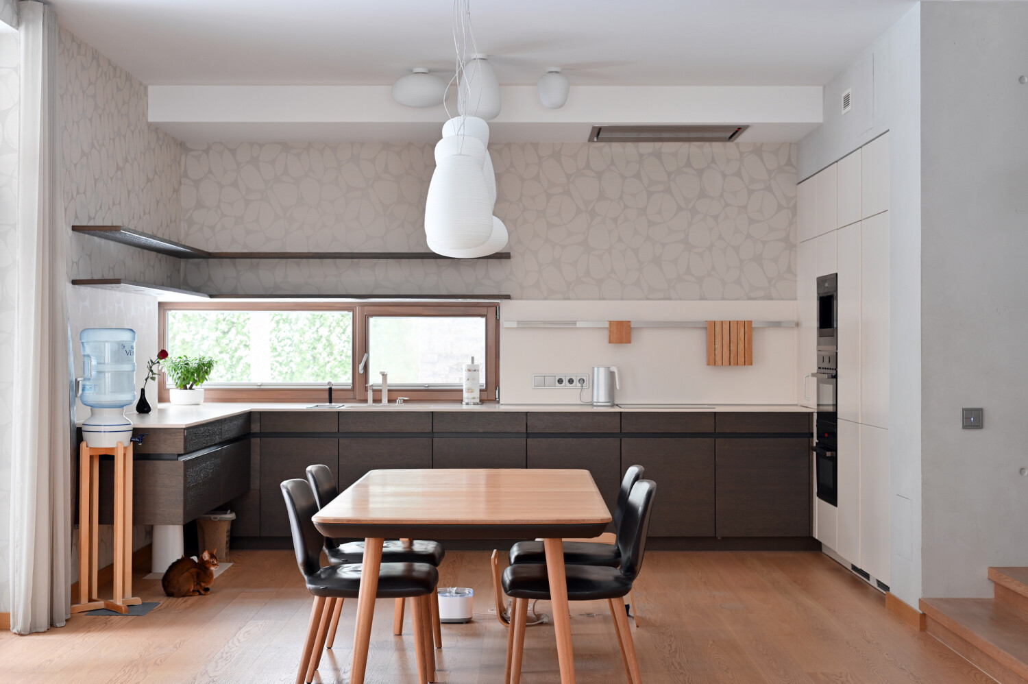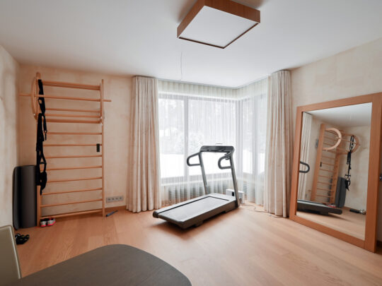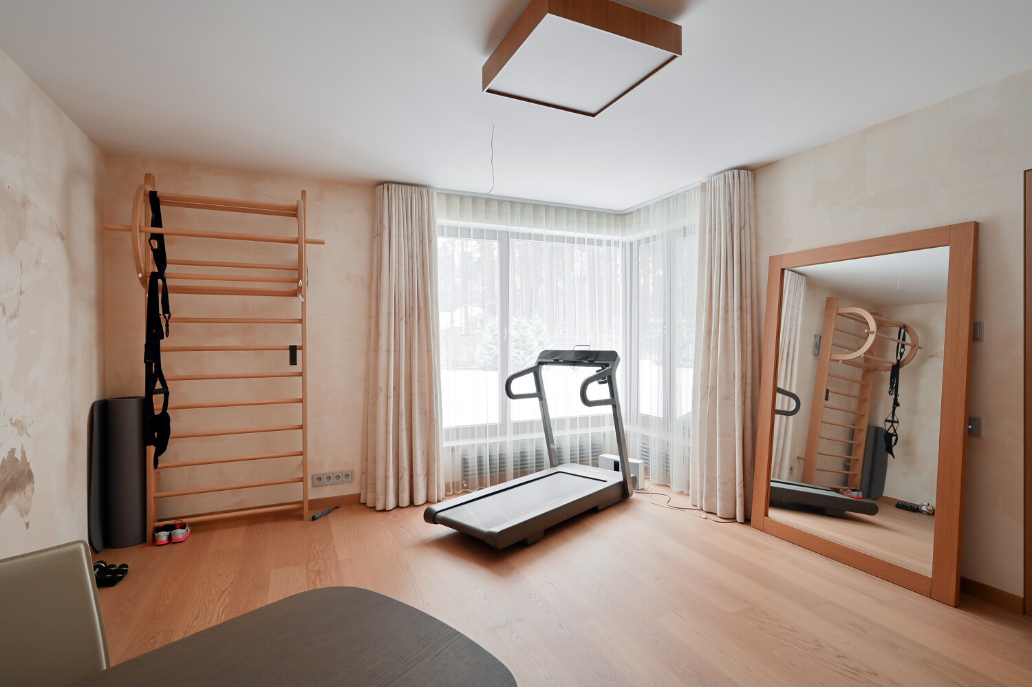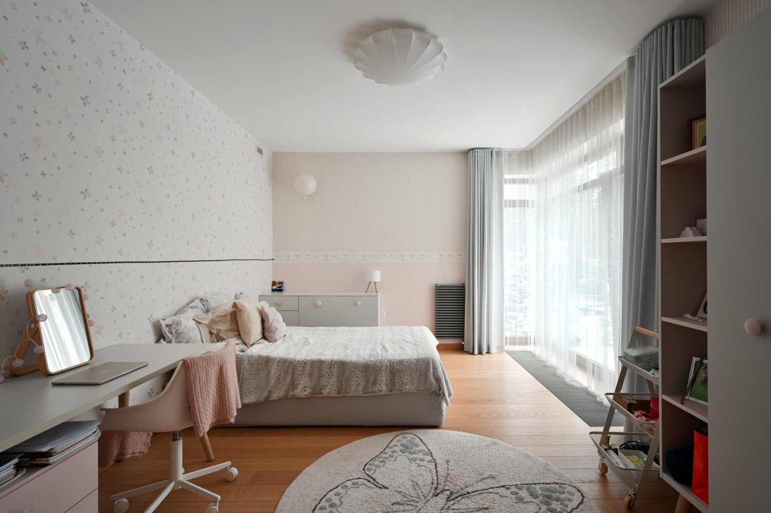 Interjeru papildina augstvērtīgas dizaina mēbeles: viesistabā Minotti dīvāns, ēdamzonā galds un krēsli no TEAM 7, viesistabas mēbeles no Kate, guļamistabas mēbeles no MC2, garderobes sistēma – arī MC2, kā arī risinājumi no Excelsior. Katrs elements ir rūpīgi izvēlēts, veidojot harmonisku, ilgmūžīgu un reprezentablu vidi.