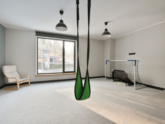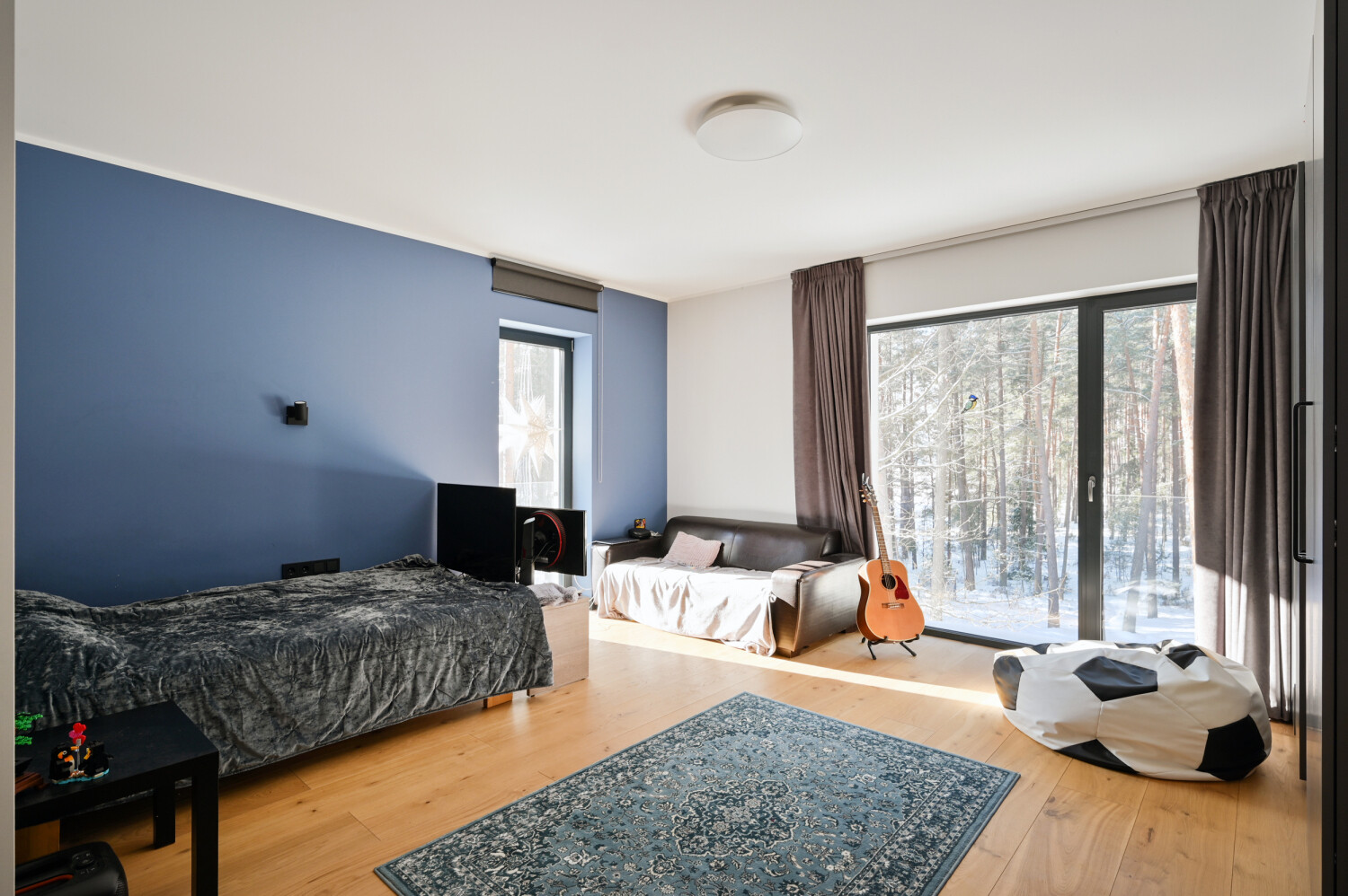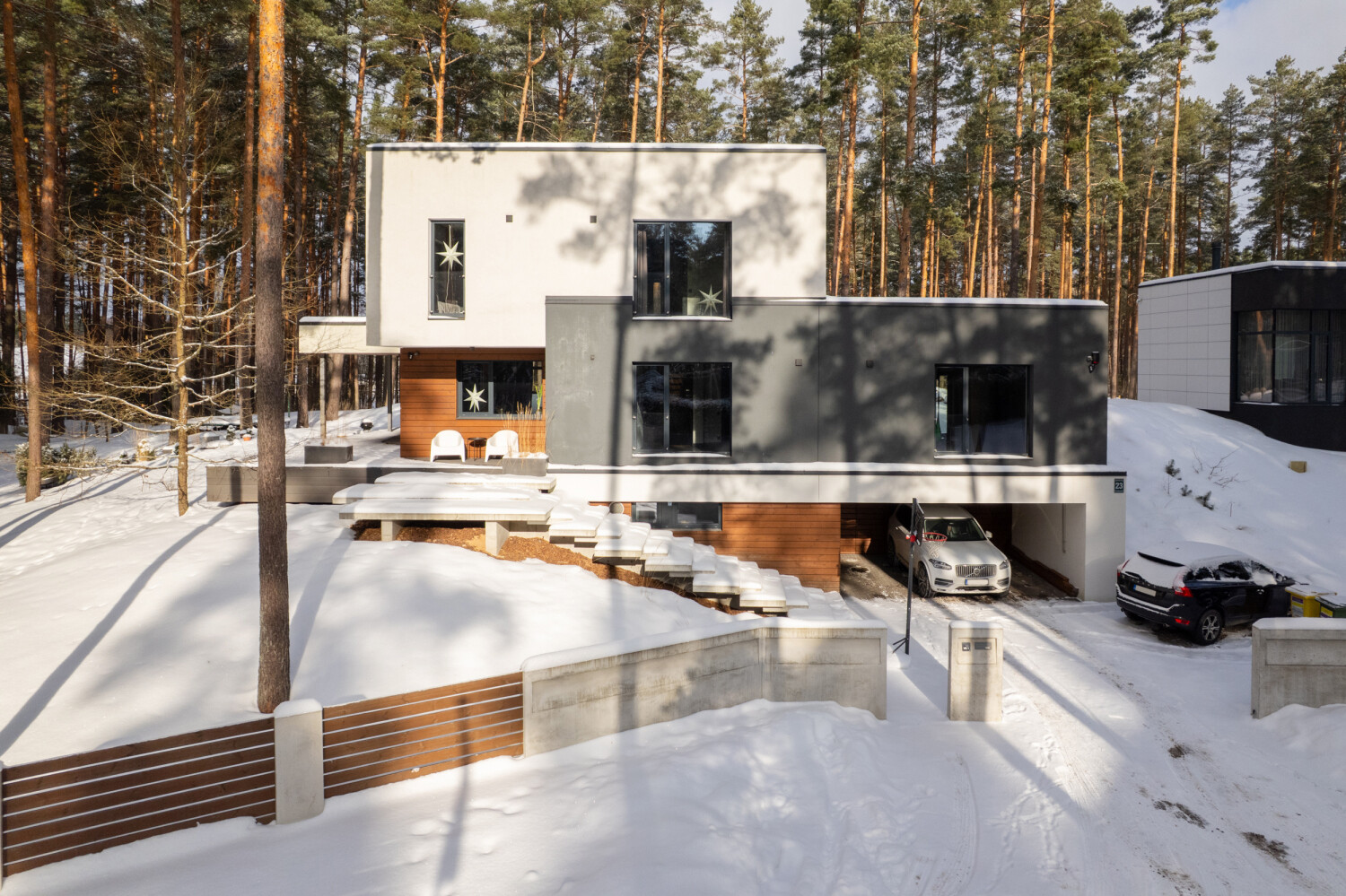 Ēka veidota trīs līmeņos, ņemot vērā reljefu un apkārtējo vidi, nodrošinot ērtu ikdienas lietojumu un loģisku telpu plūsmu. Īpašums ir piemērots gan ģimenes vajadzībām, gan prasīgai dzīves kvalitātei, kur būtiska ir telpa, funkcionalitāte un mierīga vide.