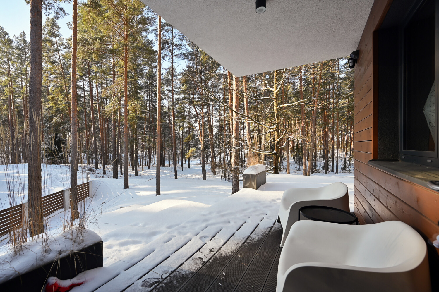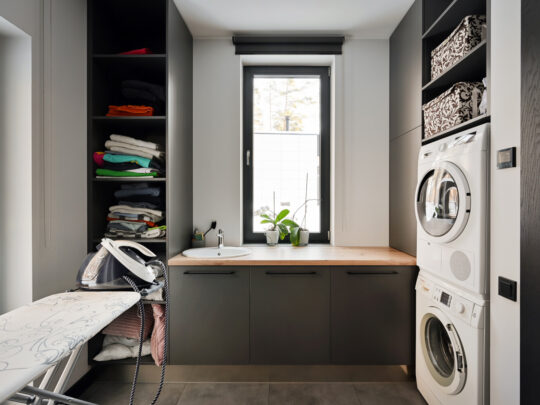 Būvniecībā un apdarē izmantoti ilgmūžīgi, augstas kvalitātes materiāli un uzticamu ražotāju risinājumi: dabīgā koka grīdas segumi, alumīnija konstrukciju logi, kvalitatīva iebūvētā tehnika un vizuāli sabalansēts interjers. Iekštelpu gaisa kvalitāti nodrošina Daikin ventilācijas sistēma ar siltuma atgūšanu.