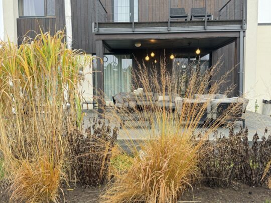 The house is surrounded by a large, fenced, and beautifully maintained garden with decorative plantings – hydrangeas, peonies, miscanthus, daylilies, artificial apple trees, silver firs, sakura trees, barberry, thuja, and more. In the context of Saliena, this property stands out with an especially large private territory.