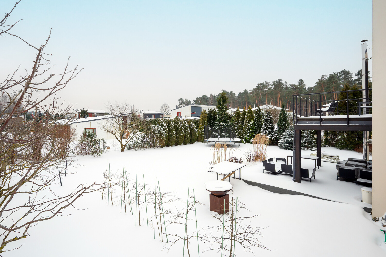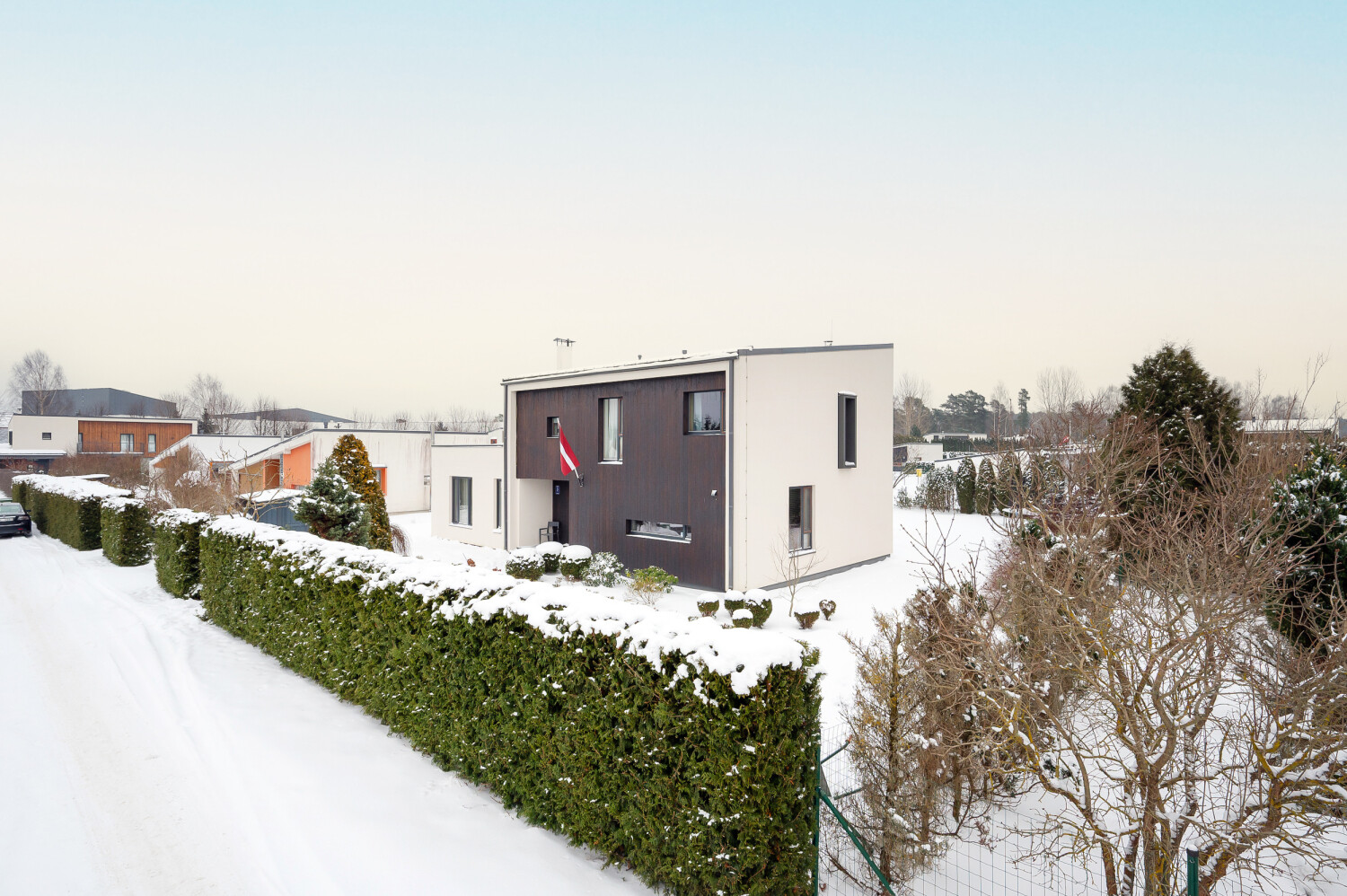 The village offers a children’s playground and a well-maintained environment. Nearby you will find a golf course with a restaurant and hotel, Inbox ice hall, equestrian center, swimming pool, music school, library, football field, secondary school, kindergarten, medical point, beauty salons, dental clinic, and several grocery stores.