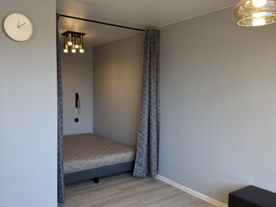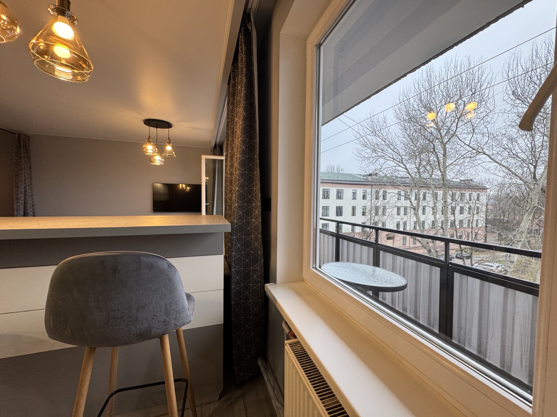 Plānojums ir pārdomāts, telpa – silta un patīkama, piemērota gan vienai personai, gan pārim, kas novērtē mierīgu vidi un ērtu piekļuvi pilsētas centram.