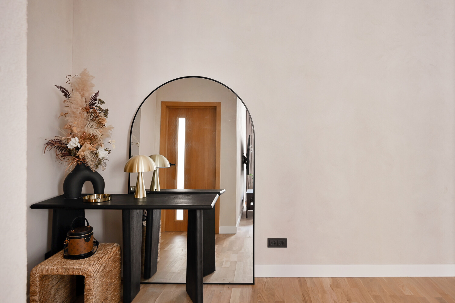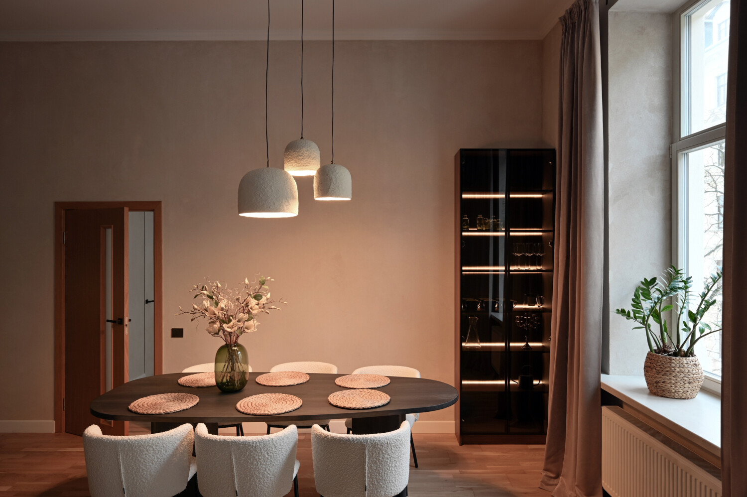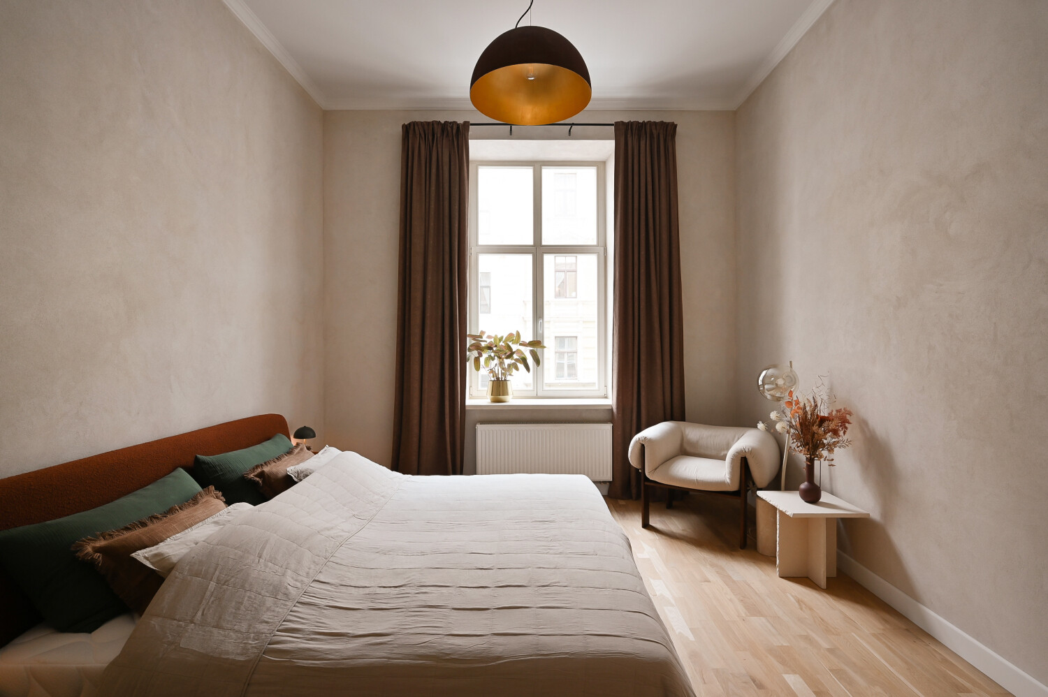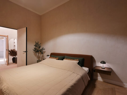 Dzīvokļa kopējā platība ir 105 m², un tā interjers izceļas ar pārdomātu telpu kompozīciju, augstiem griestiem, plašiem logiem un dabīgā koka parketa grīdām, kas telpām piešķir gaismu, plašumu un mājīgu noskaņu. Dzīvoklis ir pilnībā mēbelēts ar augstas klases dizaina mēbelēm un aprīkots ar kvalitatīvu sadzīves tehniku.