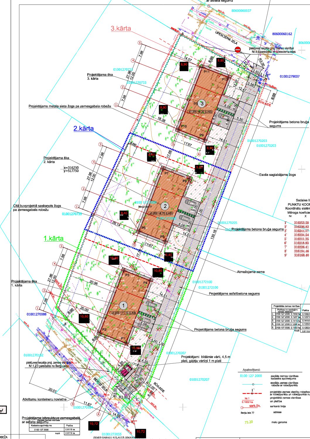 Trīs atsevišķi zemes gabali, katrs 1900 m² — lieliska vieta privātmājas vai dvīņu mājas būvniecībai meža tuvumā un ar visu infrastruktūru.